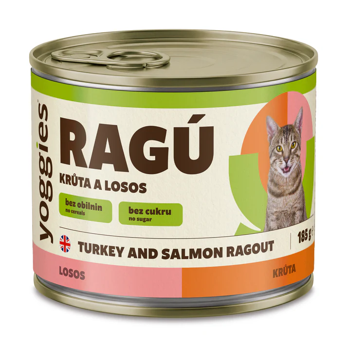 RAGÚ tvoria starostlivo vybrané kúsky morčacieho mäsa, lososa a vnútorností v jemnej omáčke, ktoré zodpovedajú potrebám mačiek. Bez zbytočných prísad navyše – len to, čo má v miske svoje miesto.