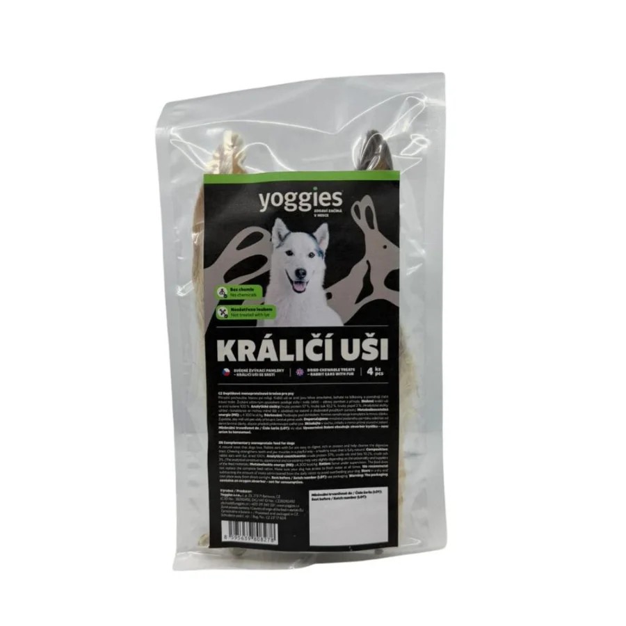 Yoggies králičie uši so srsťou sú určené pre psov všetkých plemien. Menším plemenám odporúčame rozdeliť na menšie časti. A pre všetkých parťákov s citlivým zažívaním a alergiami.