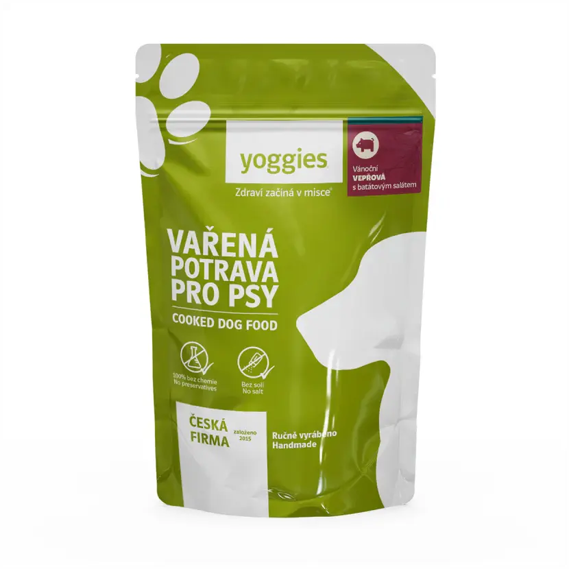 650g Yoggies Vianočná varená potrava - bravčová s batátovým šalátom