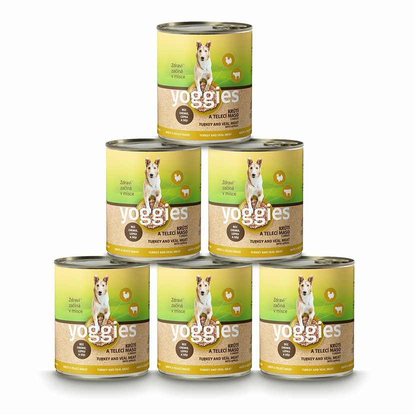 Balenie 6x800g Yoggies morčacie a teľacie, konzerva s jablkami
