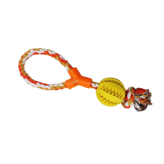 Hračka pre psa dental loptička na šnúrke so slučkou 38cm žltá