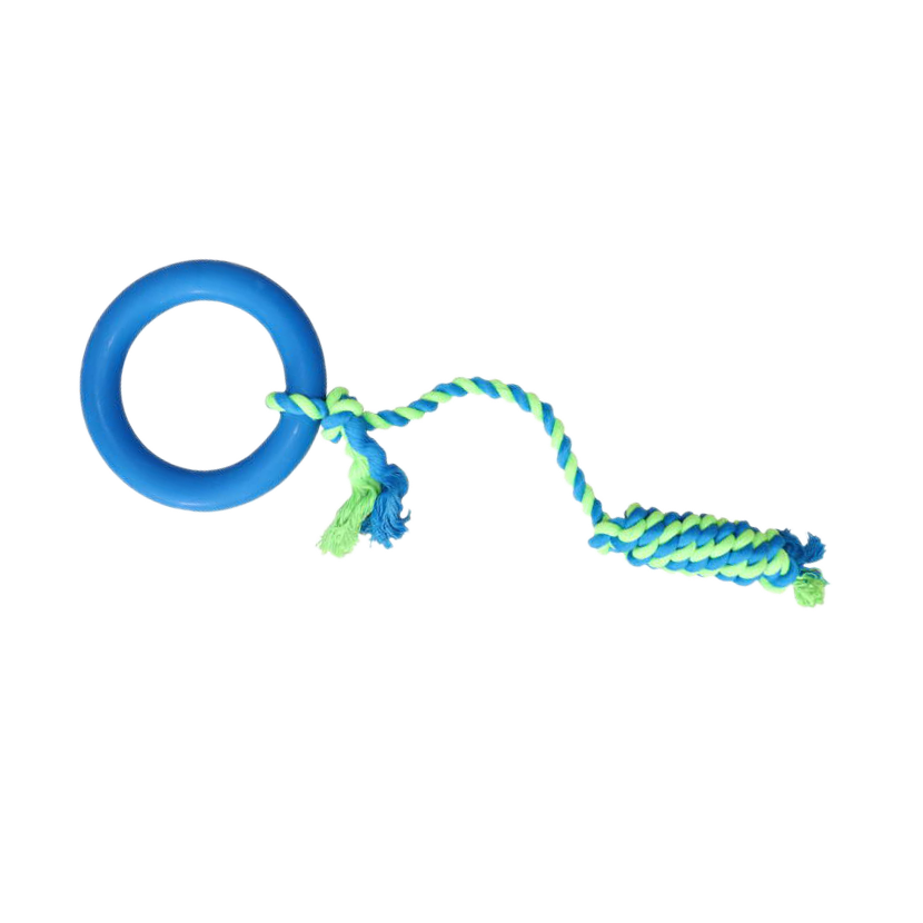 Hračka pre psa gumený kruh ringo na šnúrke 45cm modrá