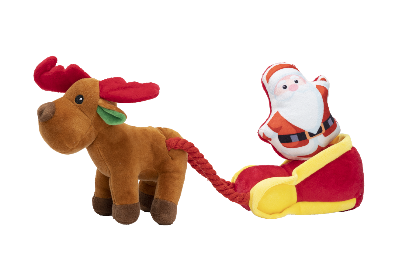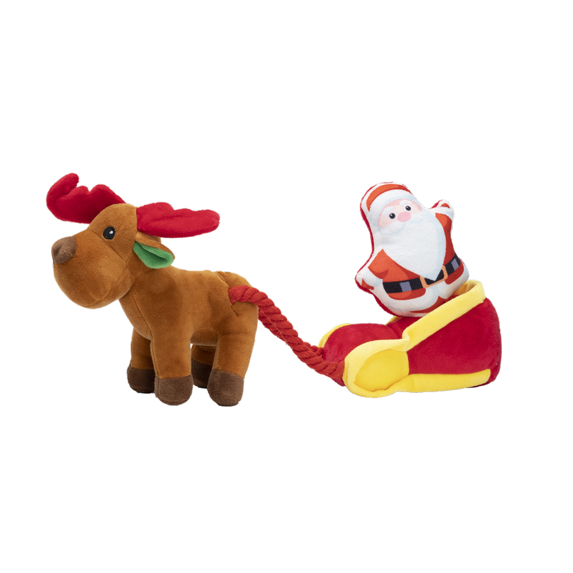 PLYŠOVÁ HRAČKA PRE PSOV SQUEAKIES Sob so Santovími saňami s pískadlom 21x18x11cm